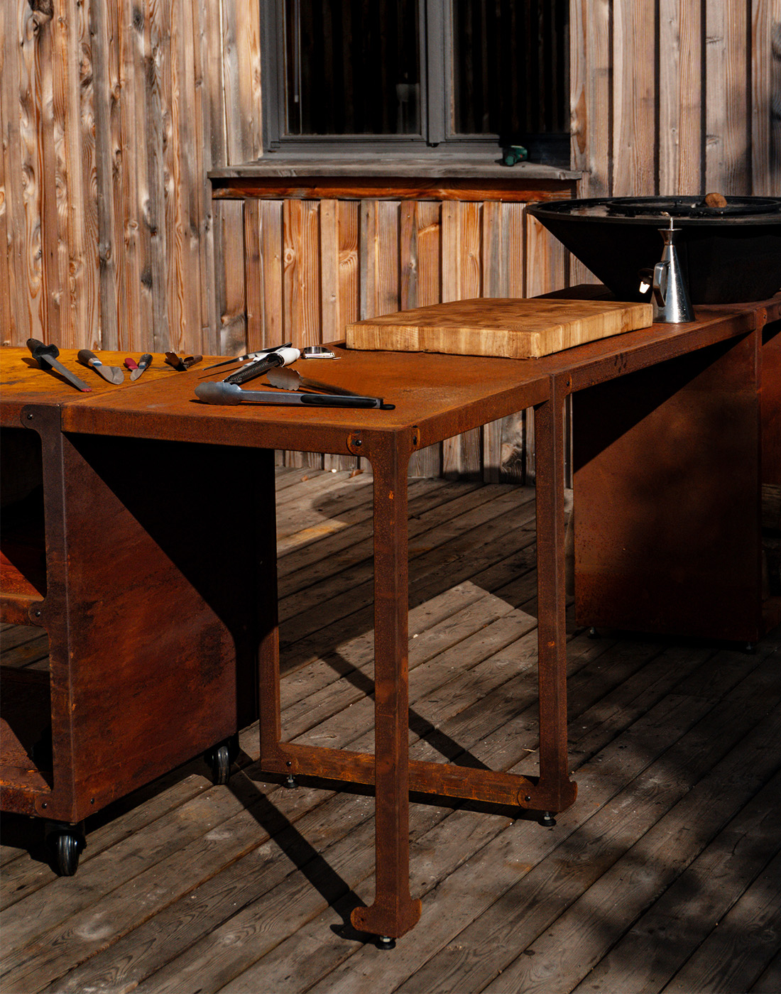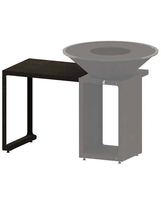 Le module TALMONT 80 est un plan de travail extérieur de 80 cm, conçu pour s’intégrer parfaitement à votre brasero ou à une desserte. Il vous permet de créer un espace de préparation pratique et organisé directement autour de votre zone de cuisson.